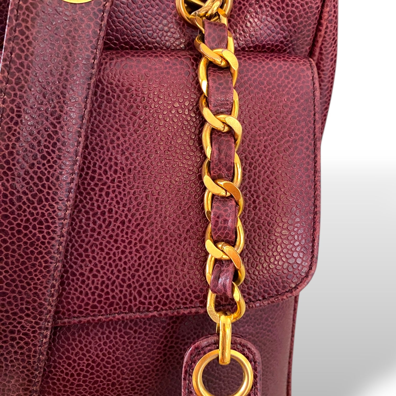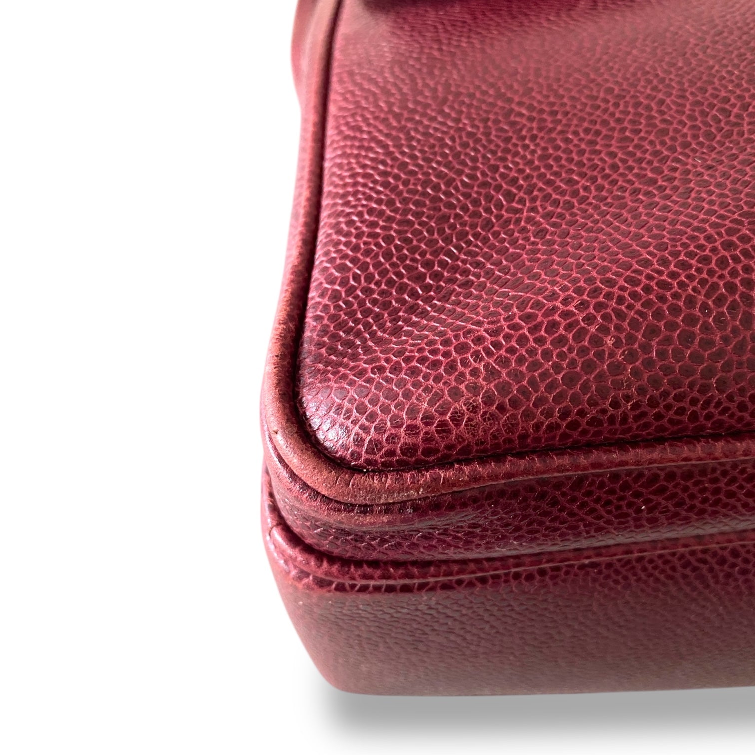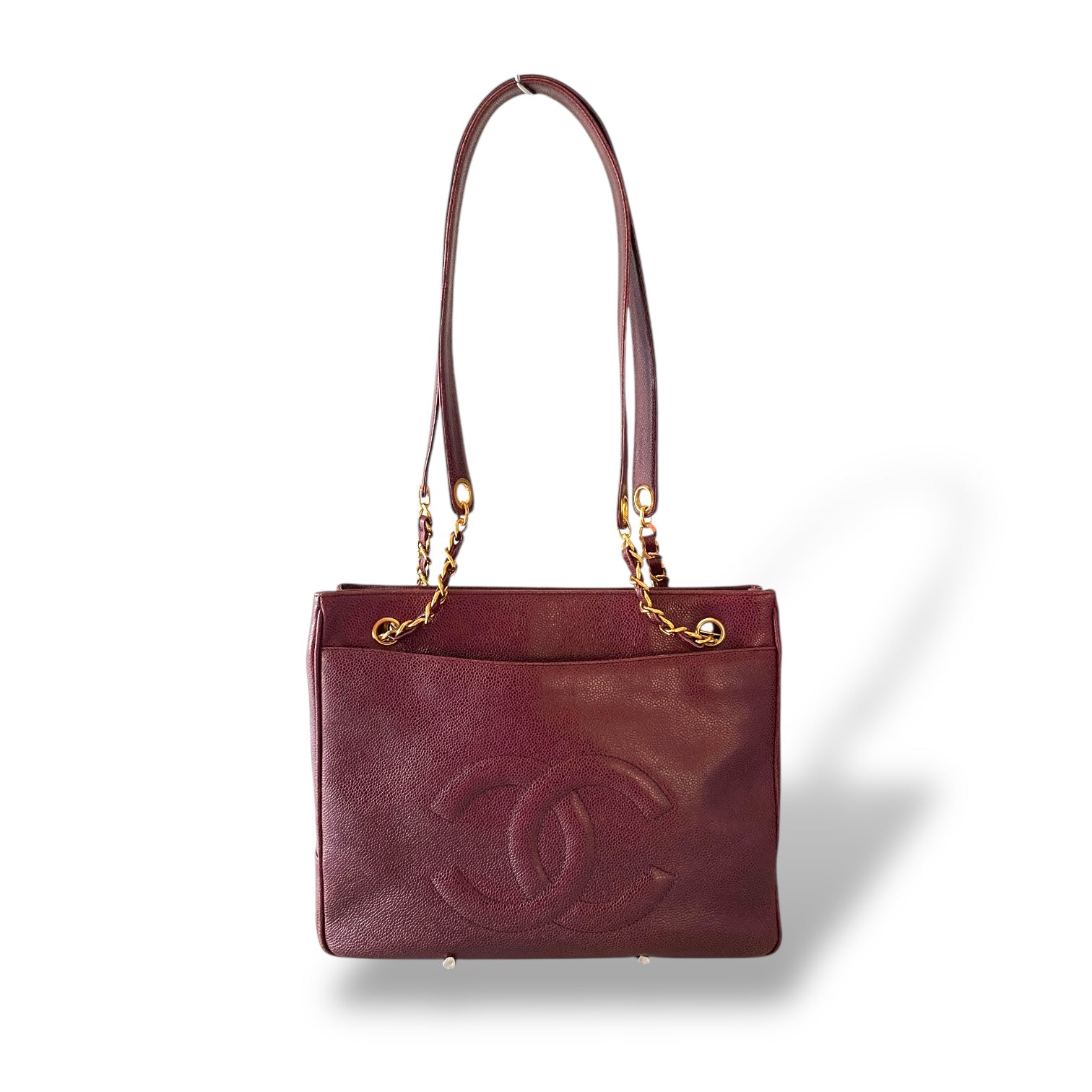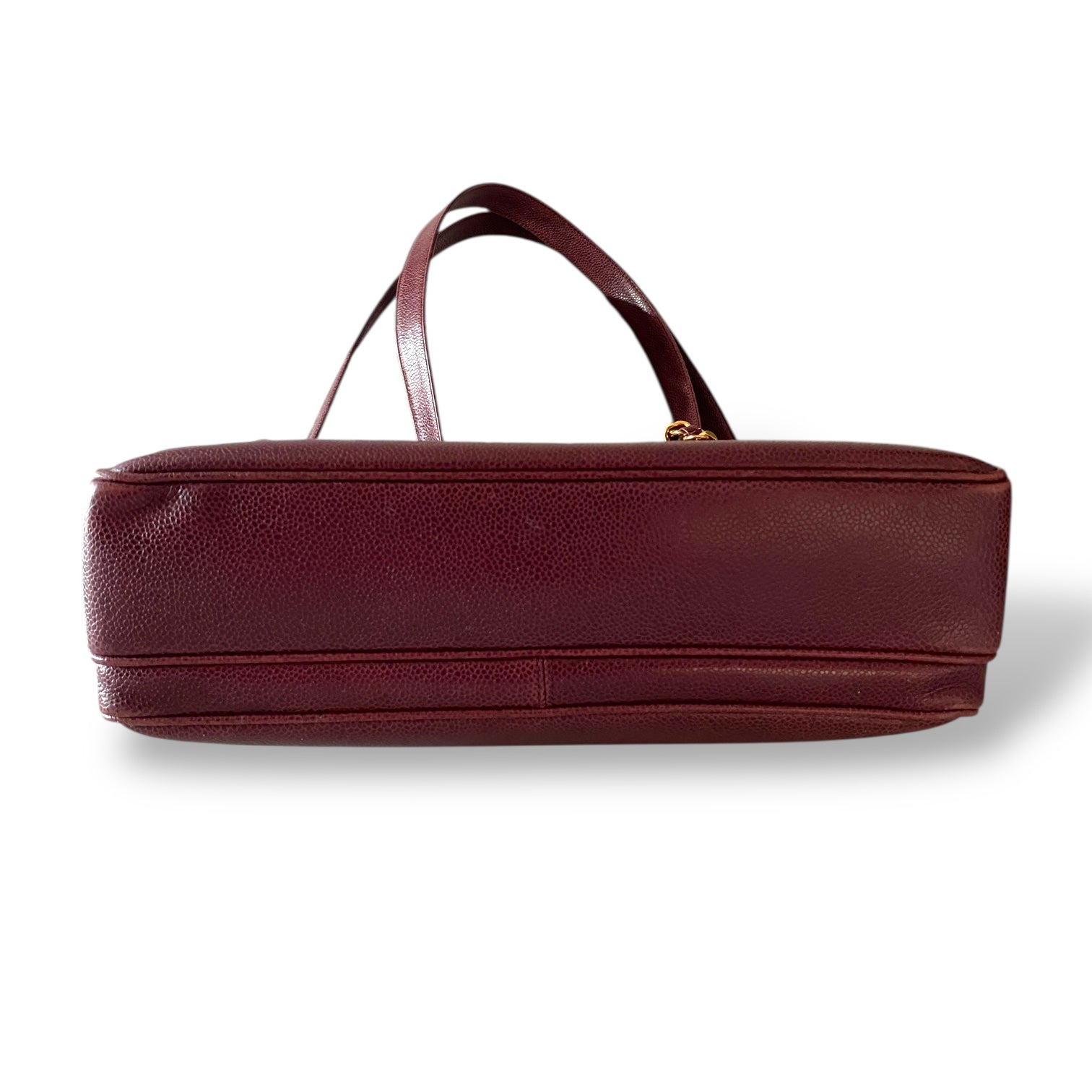 This beautiful vintage Chanel shoulder bag is fabricated from durable caviar leather in a rich deep burgundy / wine tone — a classic Chanel colour that sits somewhere between oxblood and Bordeaux. The textured caviar leather has a subtle sheen and a structured feel, making it both elegant and incredibly wearable.