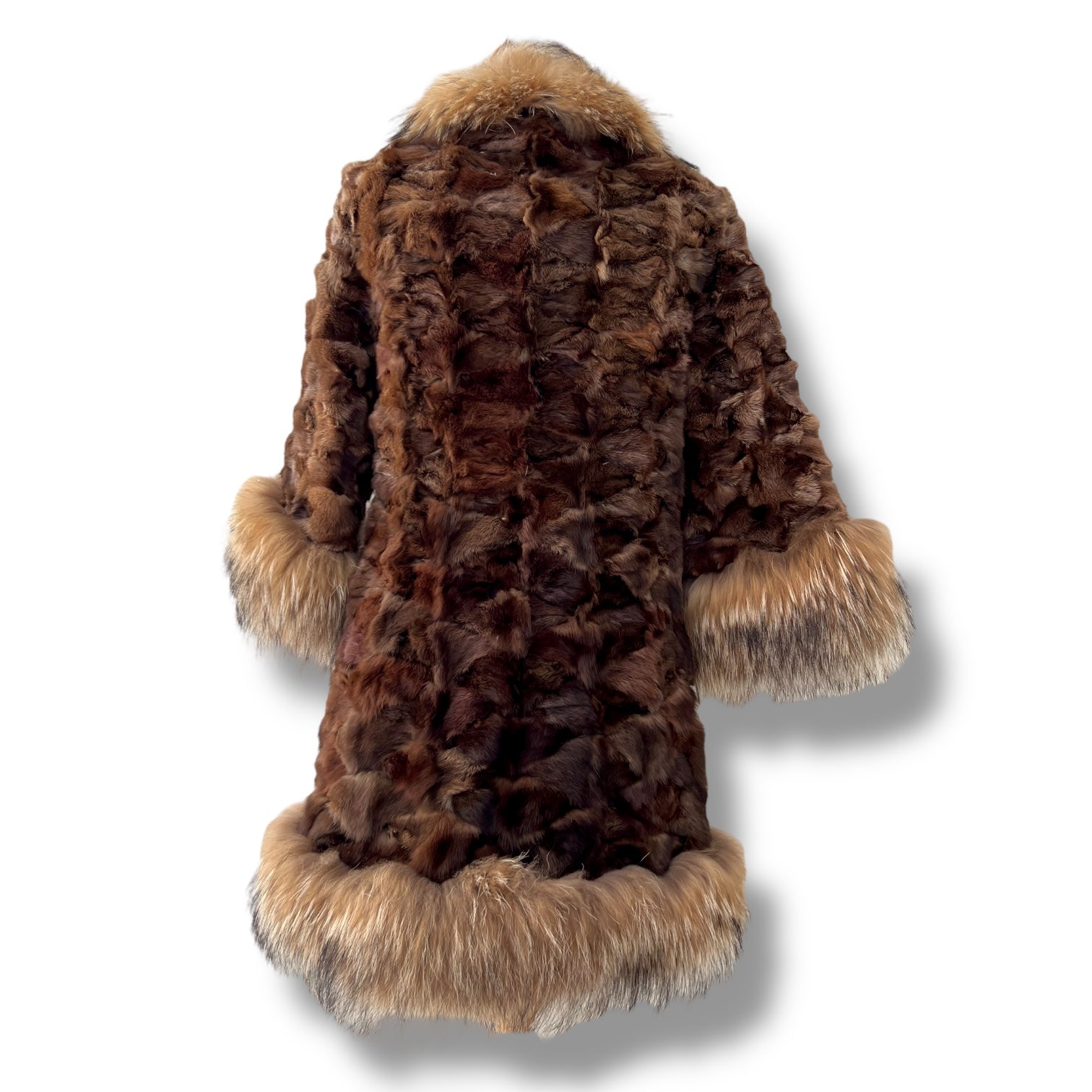 This coat is pure vintage glamour. The body is made from incredibly soft sable fur—silky, dense, and impossibly luxe—while the collar, cuffs, and hem are trimmed with plush raccoon for that hit of wild sophistication. The mix of rich chocolate browns and golden raccoon tones gives this piece a high-impact, collector-worthy vibe.
