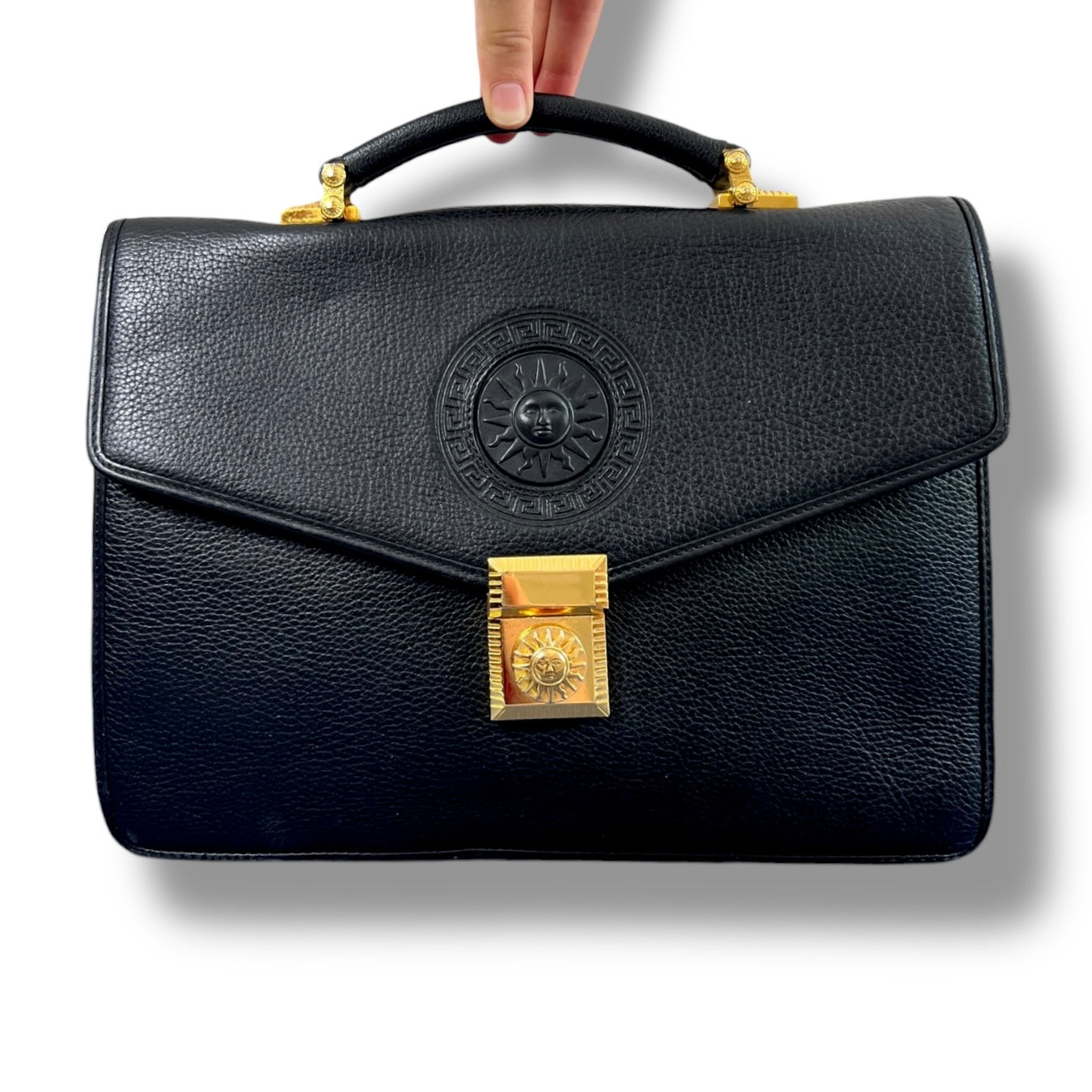 90's Gianni Versace Black Leather Medusa Briefcase with Gold Hardware