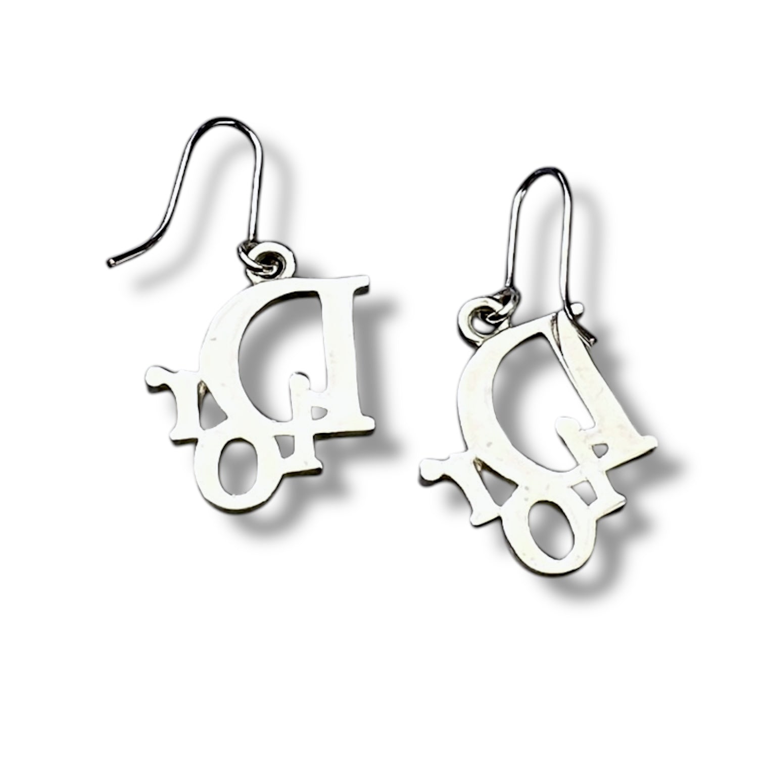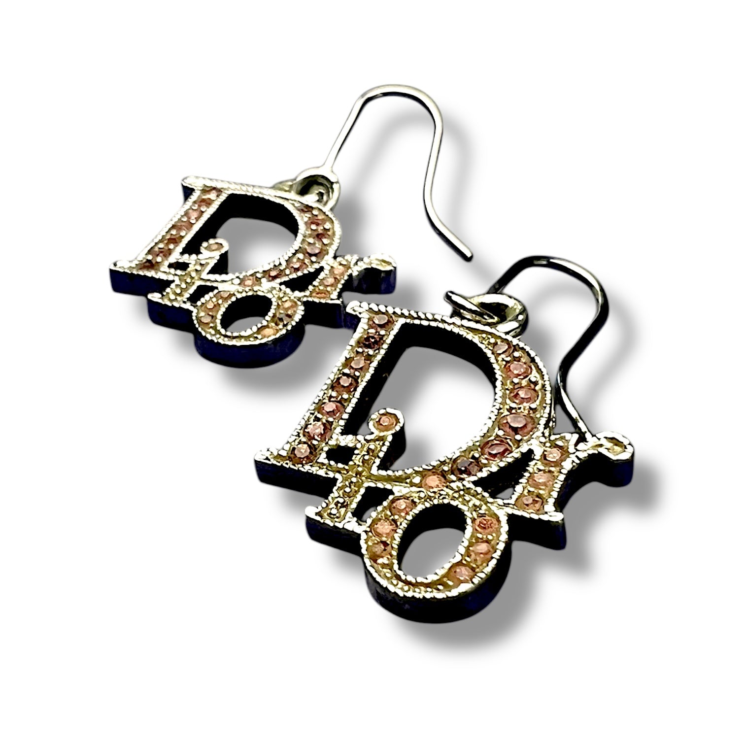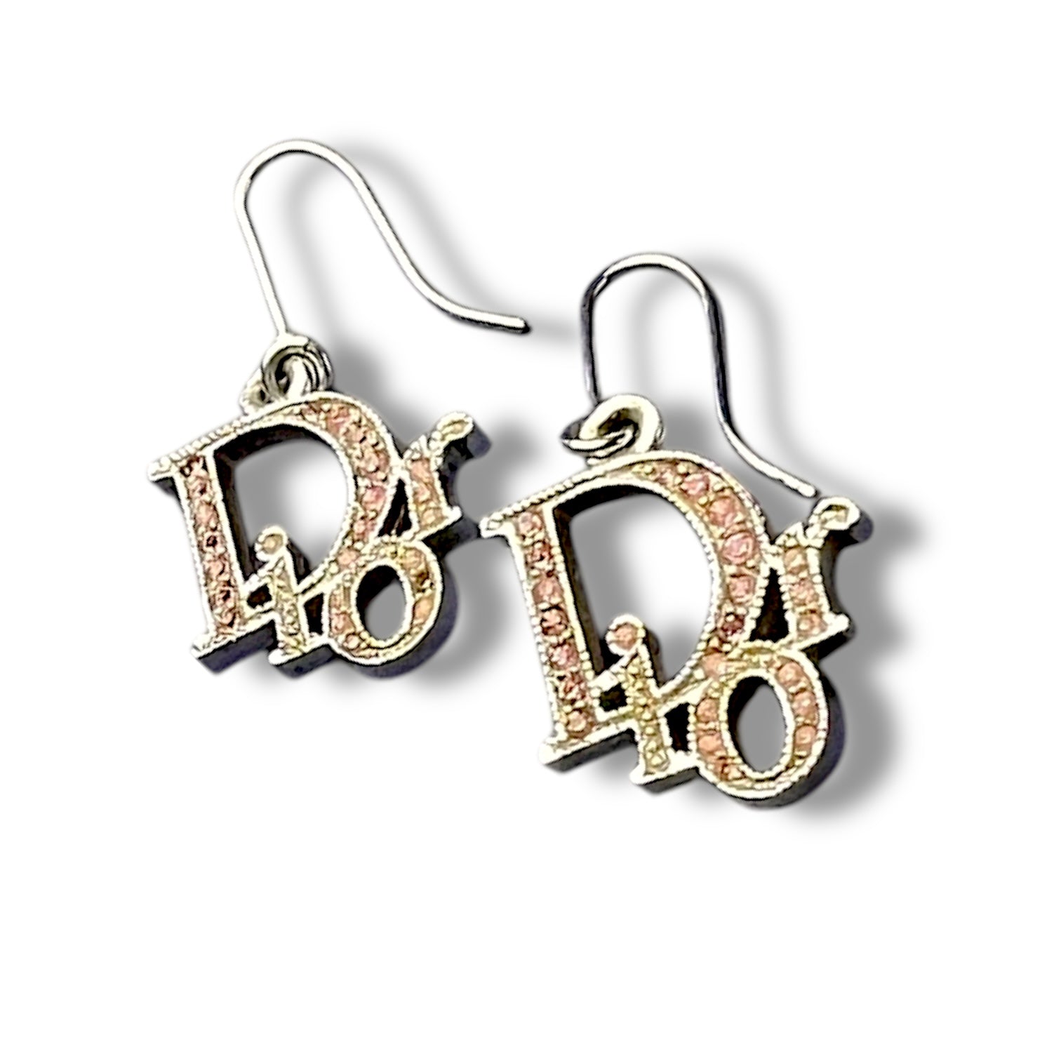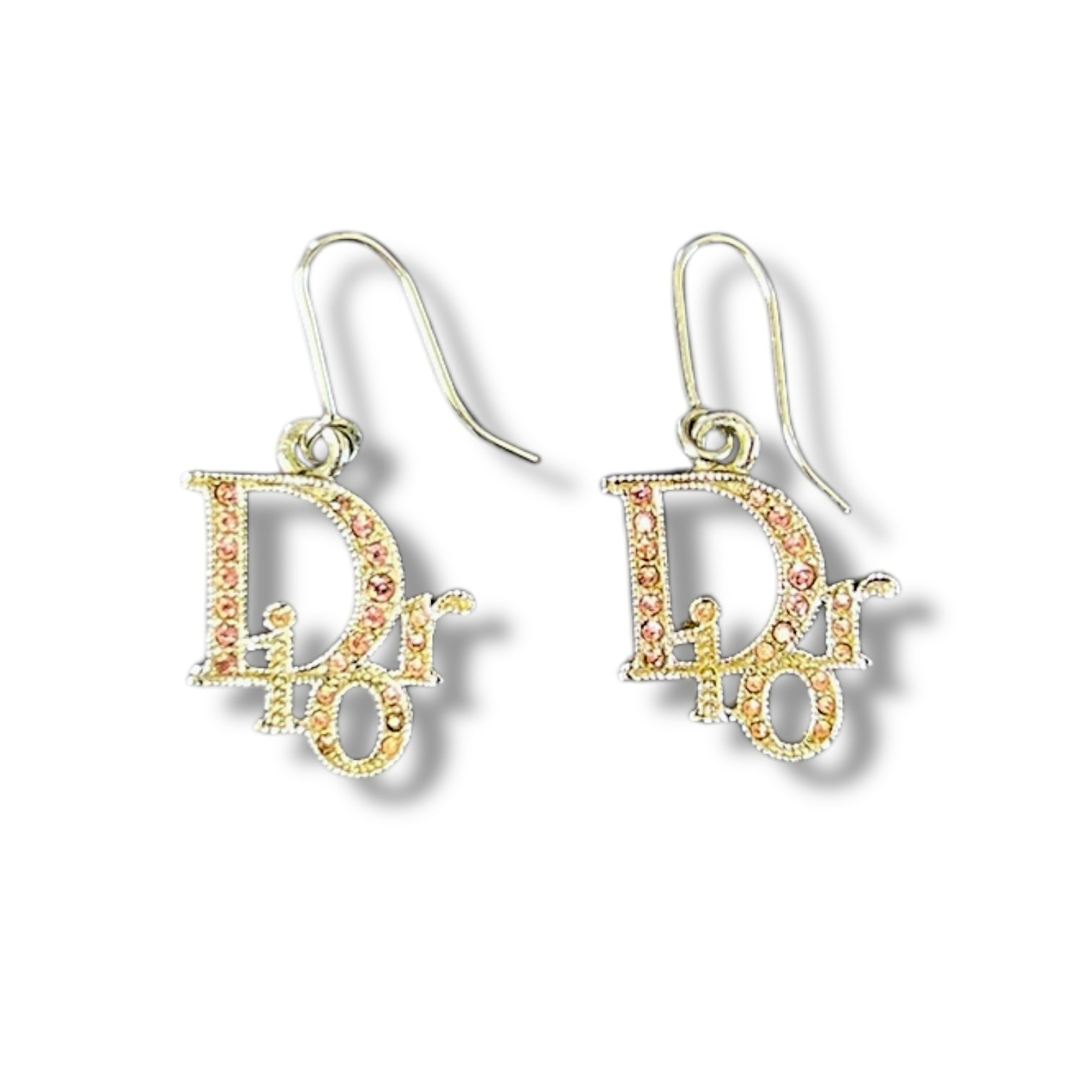 These Christian Dior drop earrings feature the unmistakable overlapping Dior logo in gold-tone metal, finished with soft pink crystal pavé detailing. Bold, playful, and unmistakably Y2K — this is peak early-2000s logo energy.