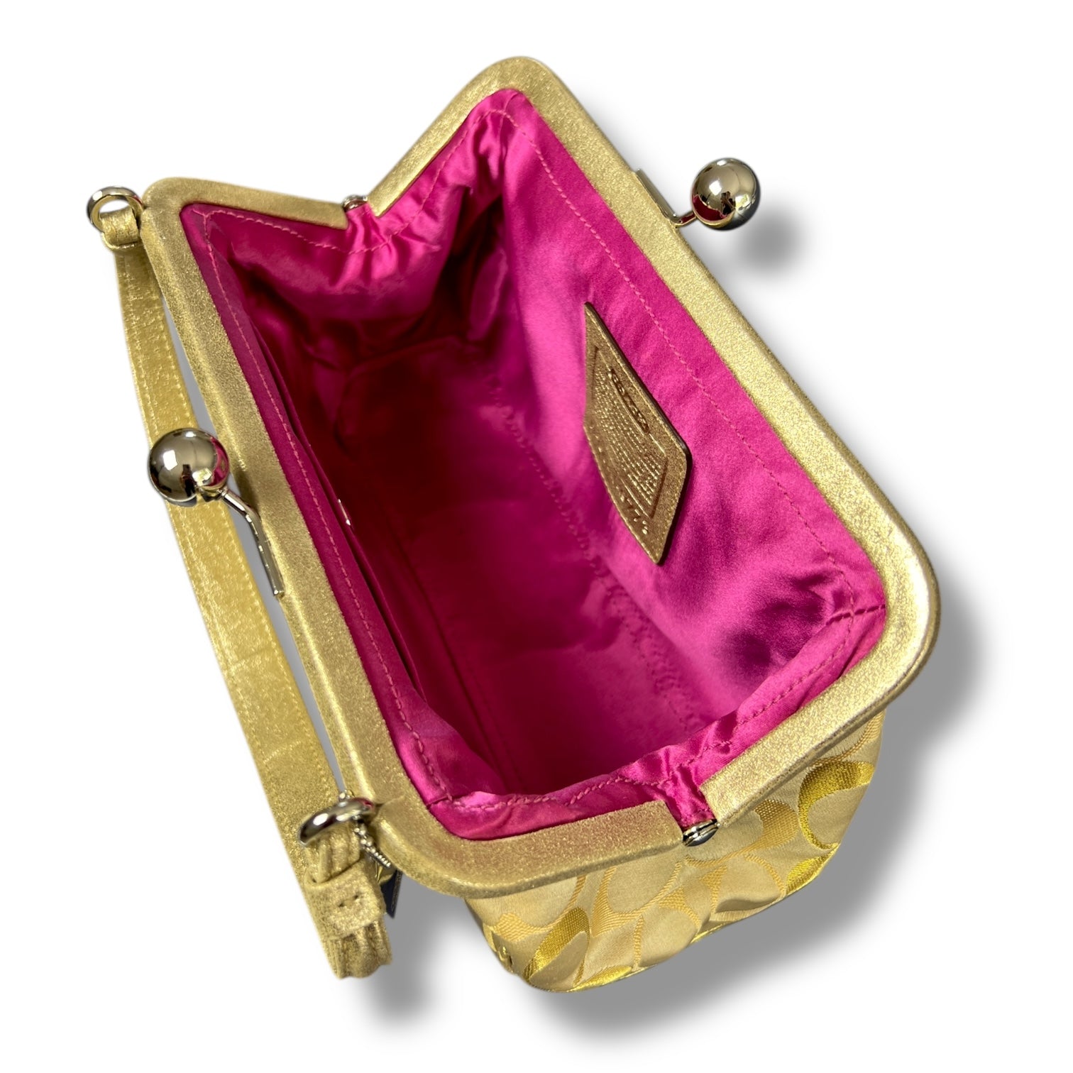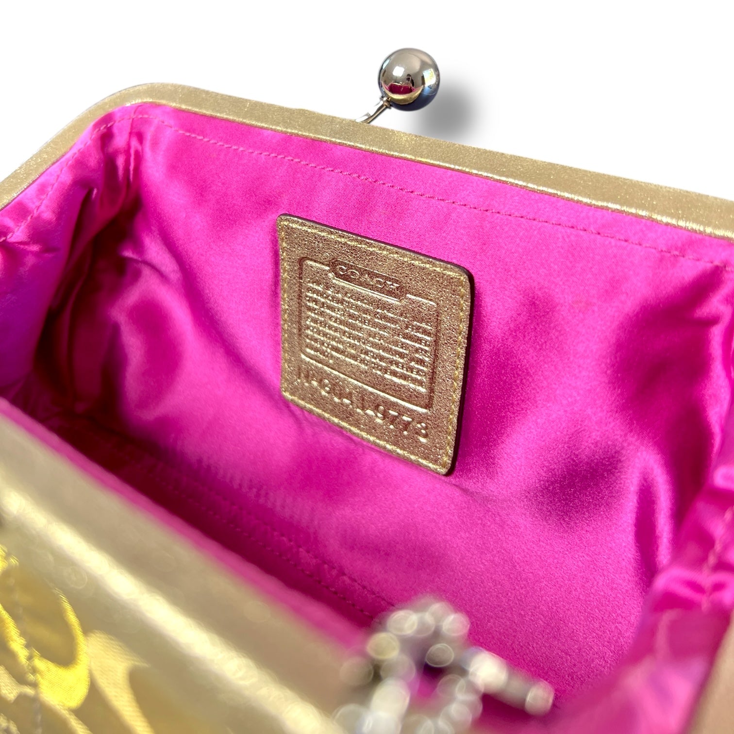A perfect piece for anyone who loves early-2000s Coach, kiss-lock silhouettes, or a touch of vintage gold done tastefully.
