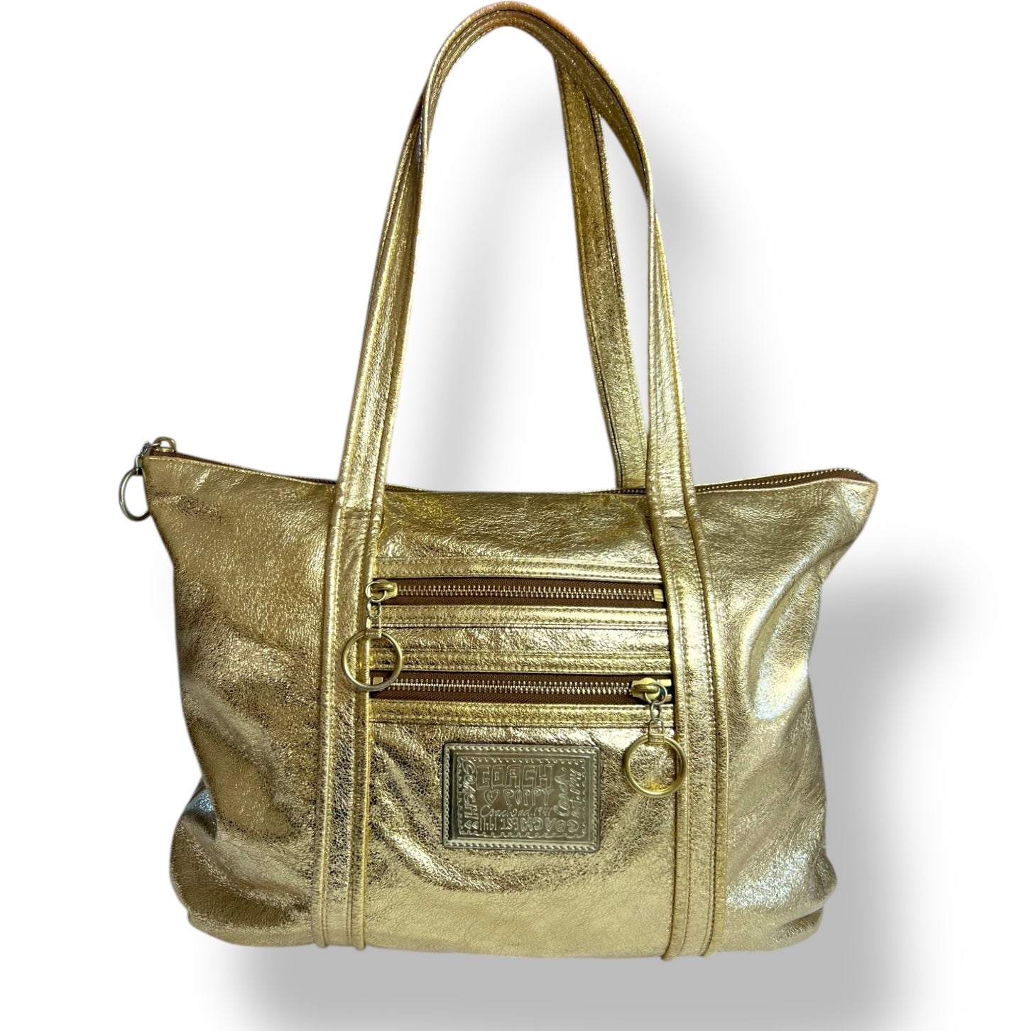 Bring the shine. ✨ This bold and brilliant Coach Poppy Metallic Glam Tote is everything we love about the playful, confident Poppy era — metallic statement leather, double front zips, and the signature Coach patch with embossed logo.