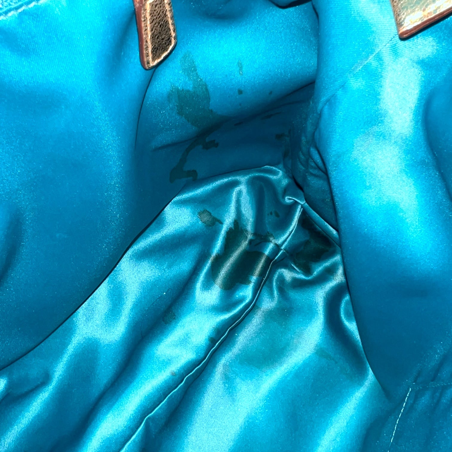 Finished in gold metallic leather with gleaming hardware, the spacious silhouette features Coach’s iconic turquoise satin lining, adding that unmistakable Poppy pop. Perfect for travel, weekends, or just making an entrance.