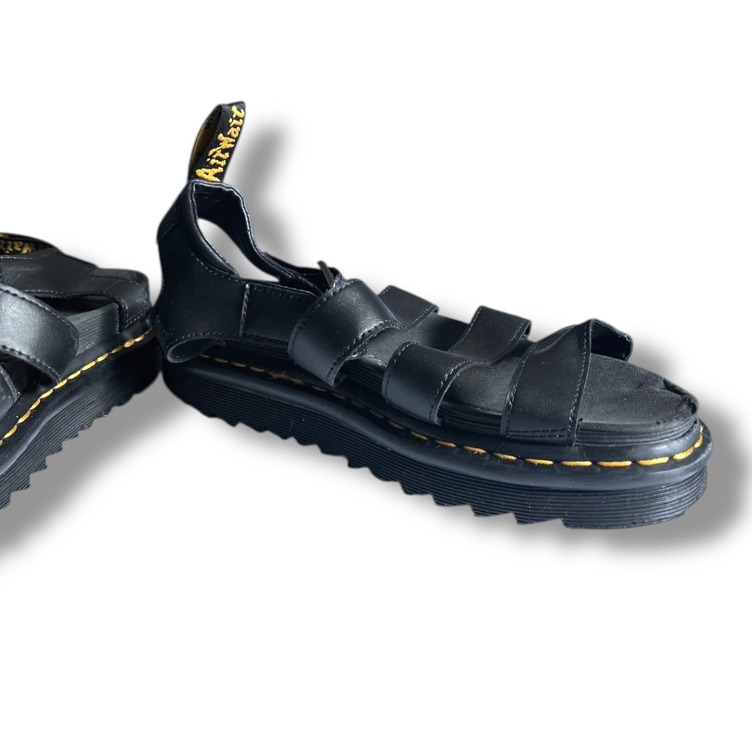 Chunky, cool, and unmistakably Dr. Martens — these Blaire leather sandals bring the brand’s signature edge to summer. Featuring smooth black leather straps, an adjustable buckle ankle fastening, and that iconic yellow welt stitching, they sit on a lightweight ripple sole for all-day comfort.