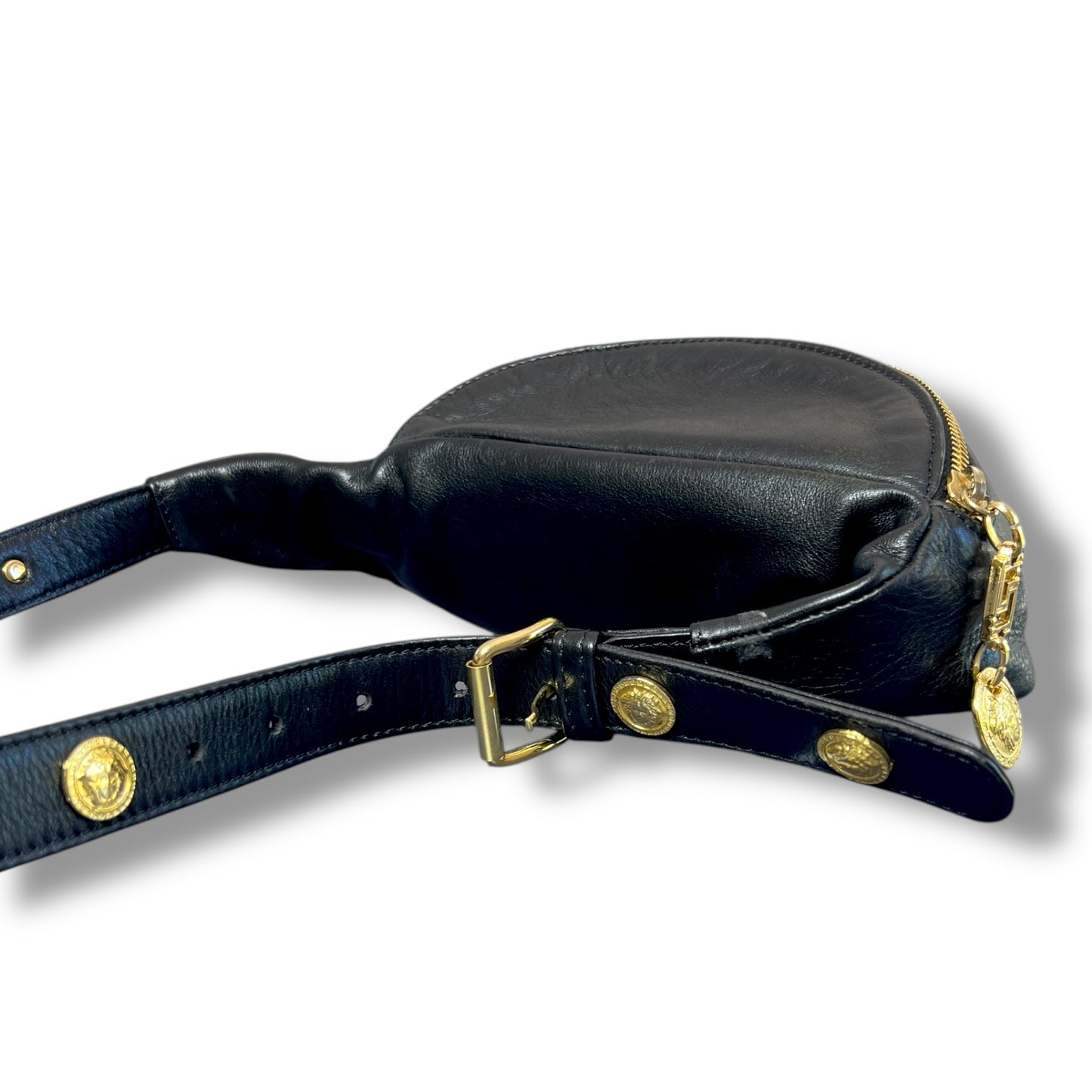 Gianni Versace Black Leather Medusa Belt Bag
