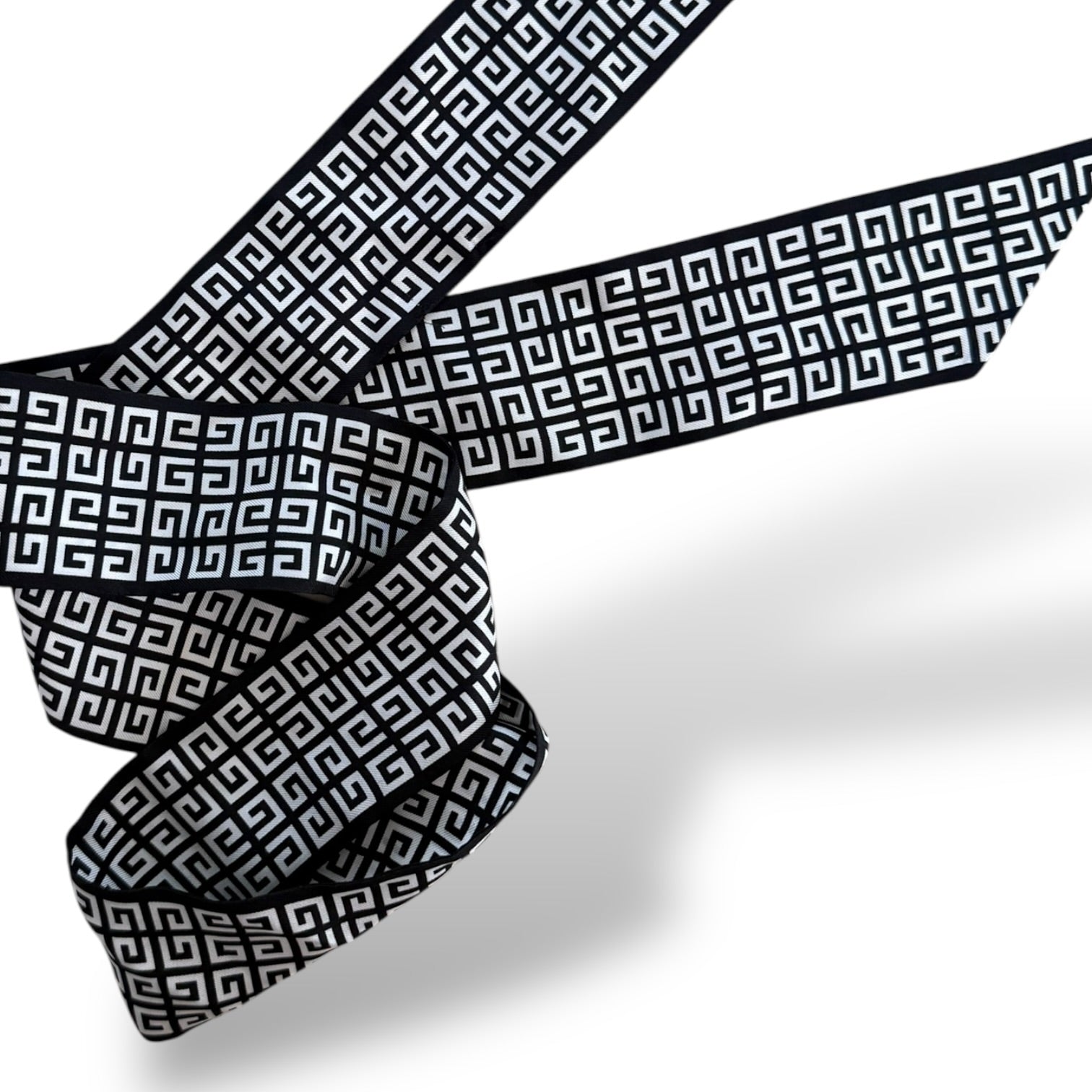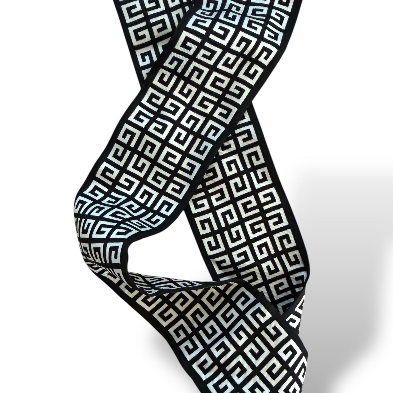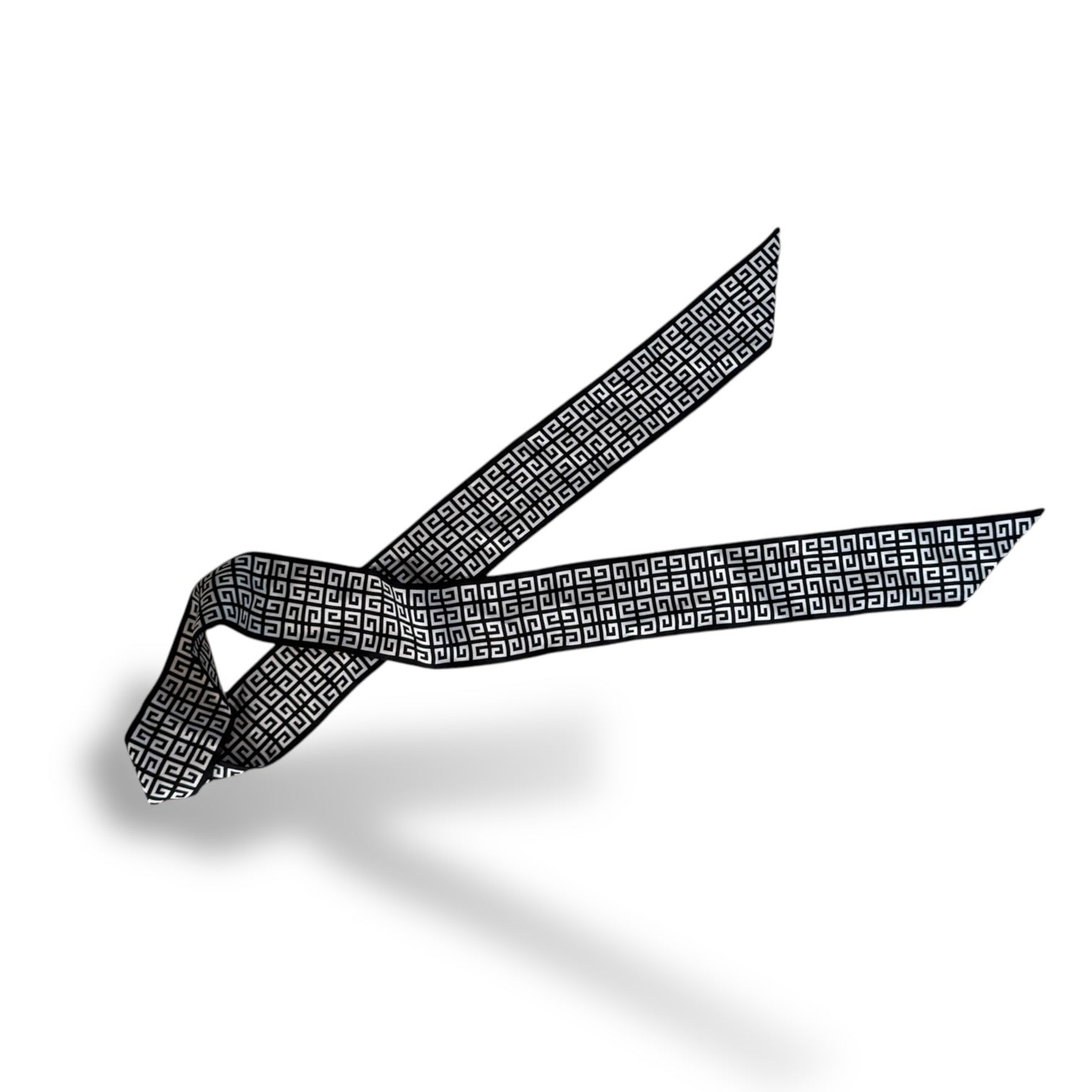 Clean, graphic, and instantly recognisable. This vintage Givenchy silk twilly features a bold black and white geometric pattern inspired by the house’s signature Greek key motif — sharp, modern, and endlessly wearable.