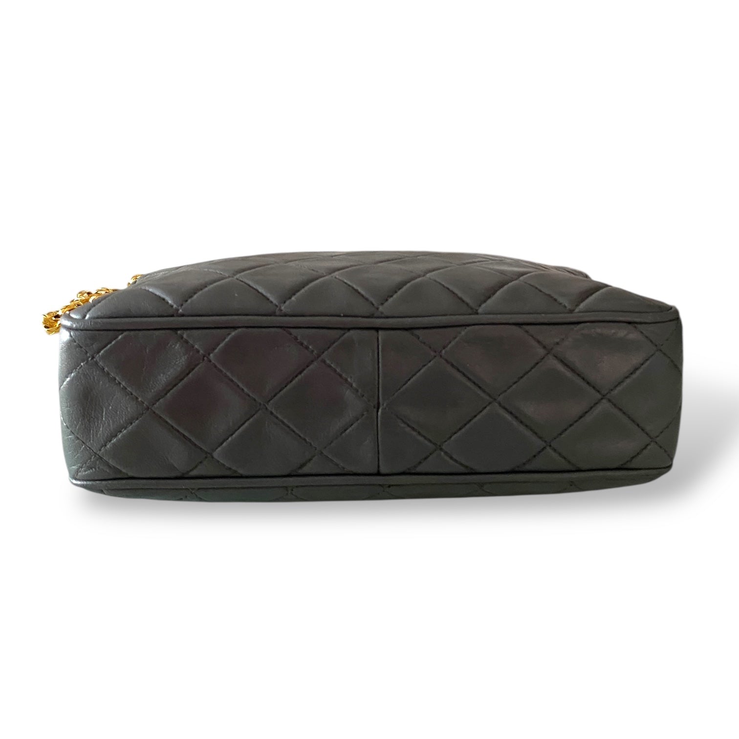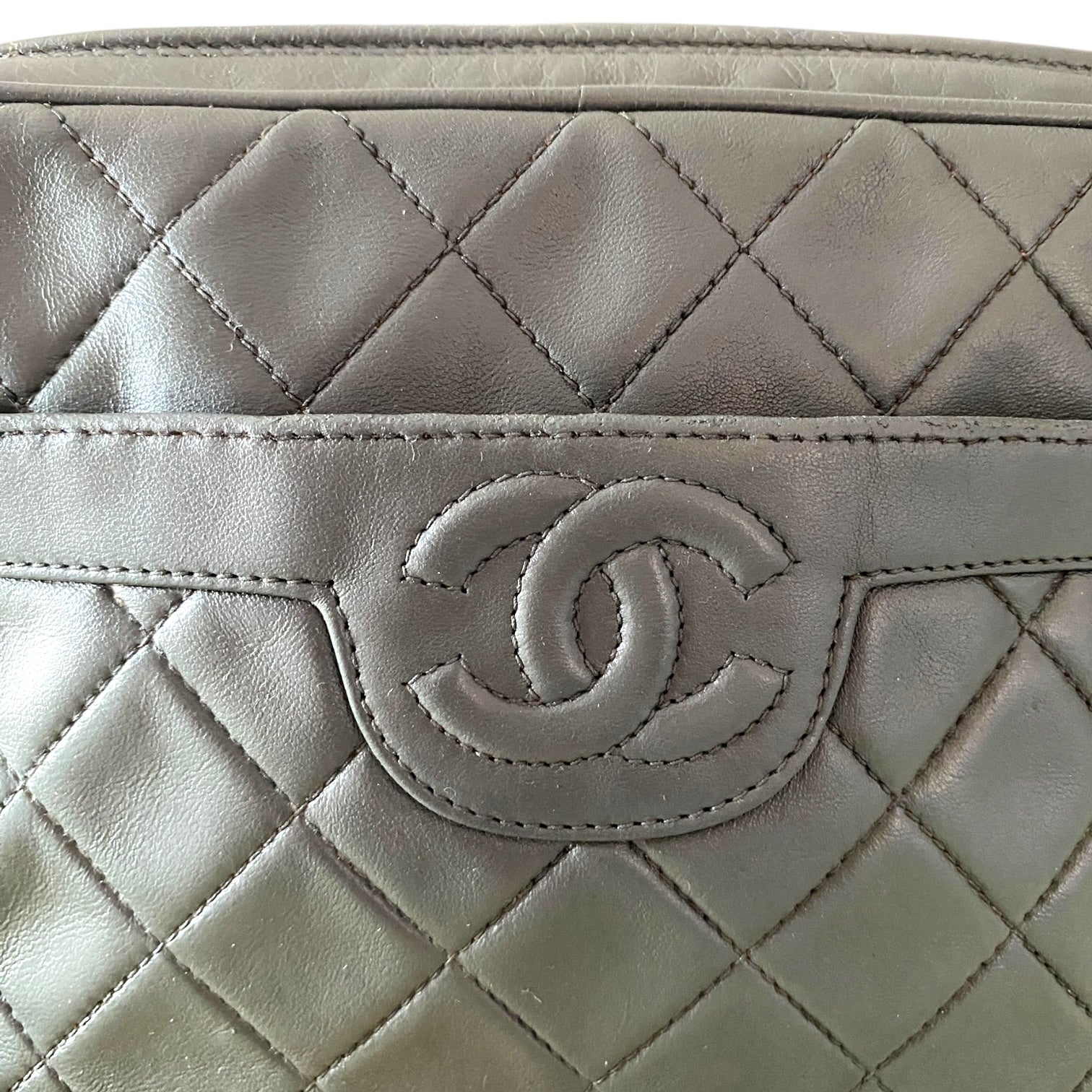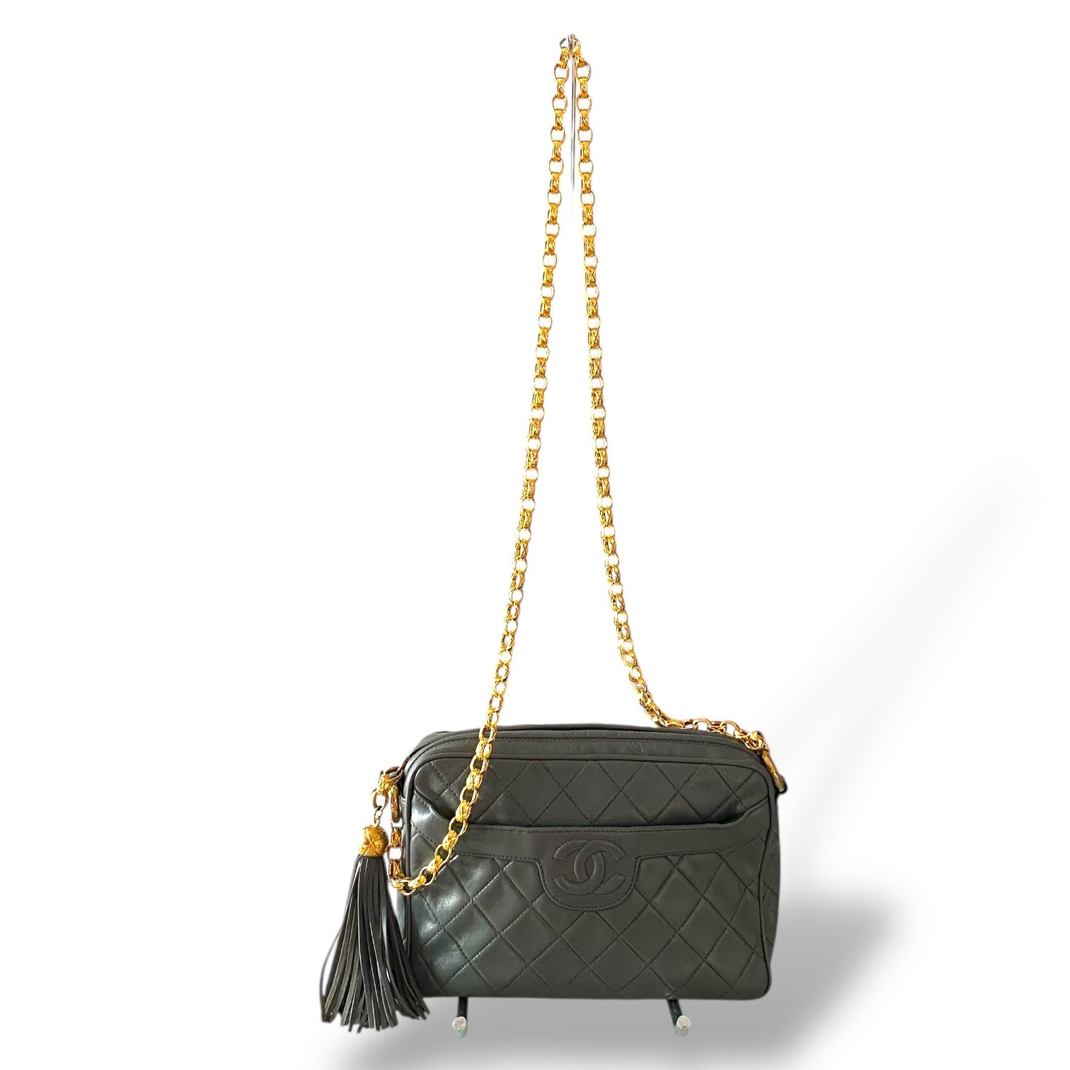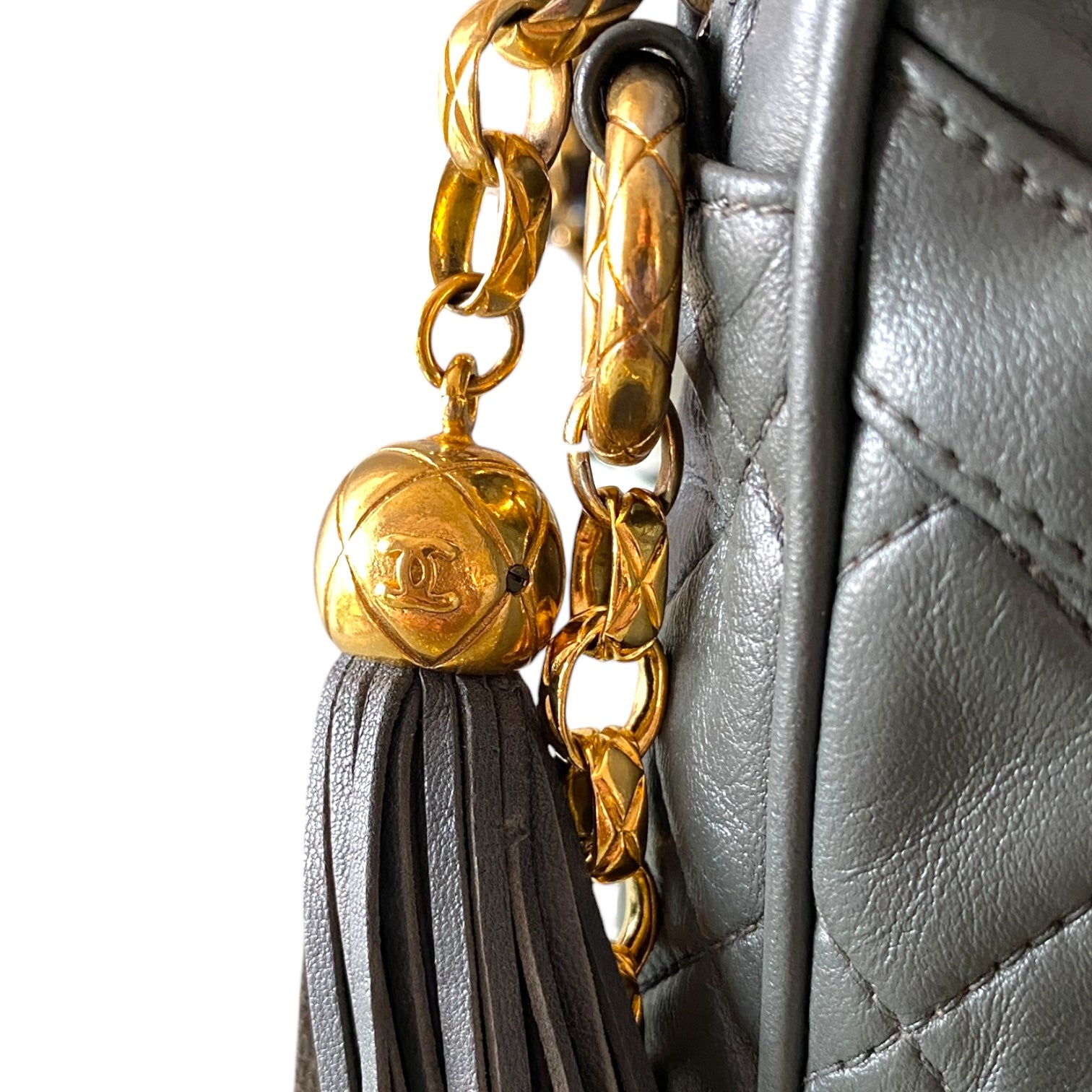 This elegant Chanel camera bag is crafted from soft quilted grey lambskin and finished with classic gold-plated hardware, a combination that feels both refined and quietly striking. The grey tone is sophisticated and versatile — softer than black, but just as timeless — and pairs beautifully with the warmth of the gold hardware.