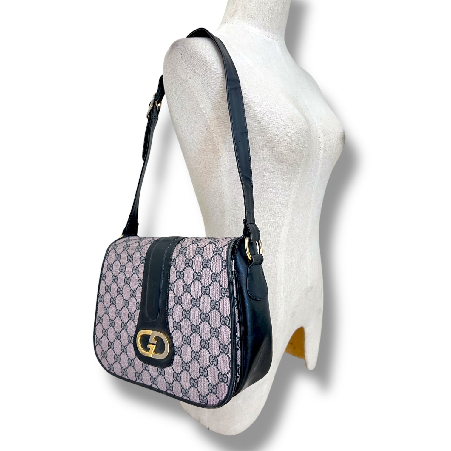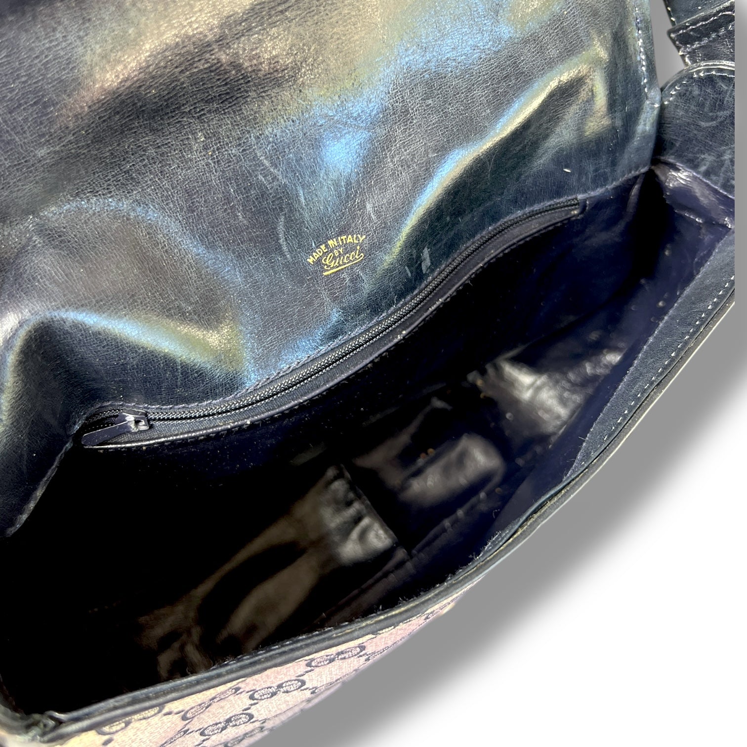 This style sits comfortably in the late 1970s to early 1980s Gucci period — identifiable by the coated GG canvas, the rounded flap silhouette, and the earlier interlocking GG hardware, which is smaller and more understated than later, more commercial iterations. The interior stamp, “Made in Italy by Gucci,” is also consistent with pieces from this era.