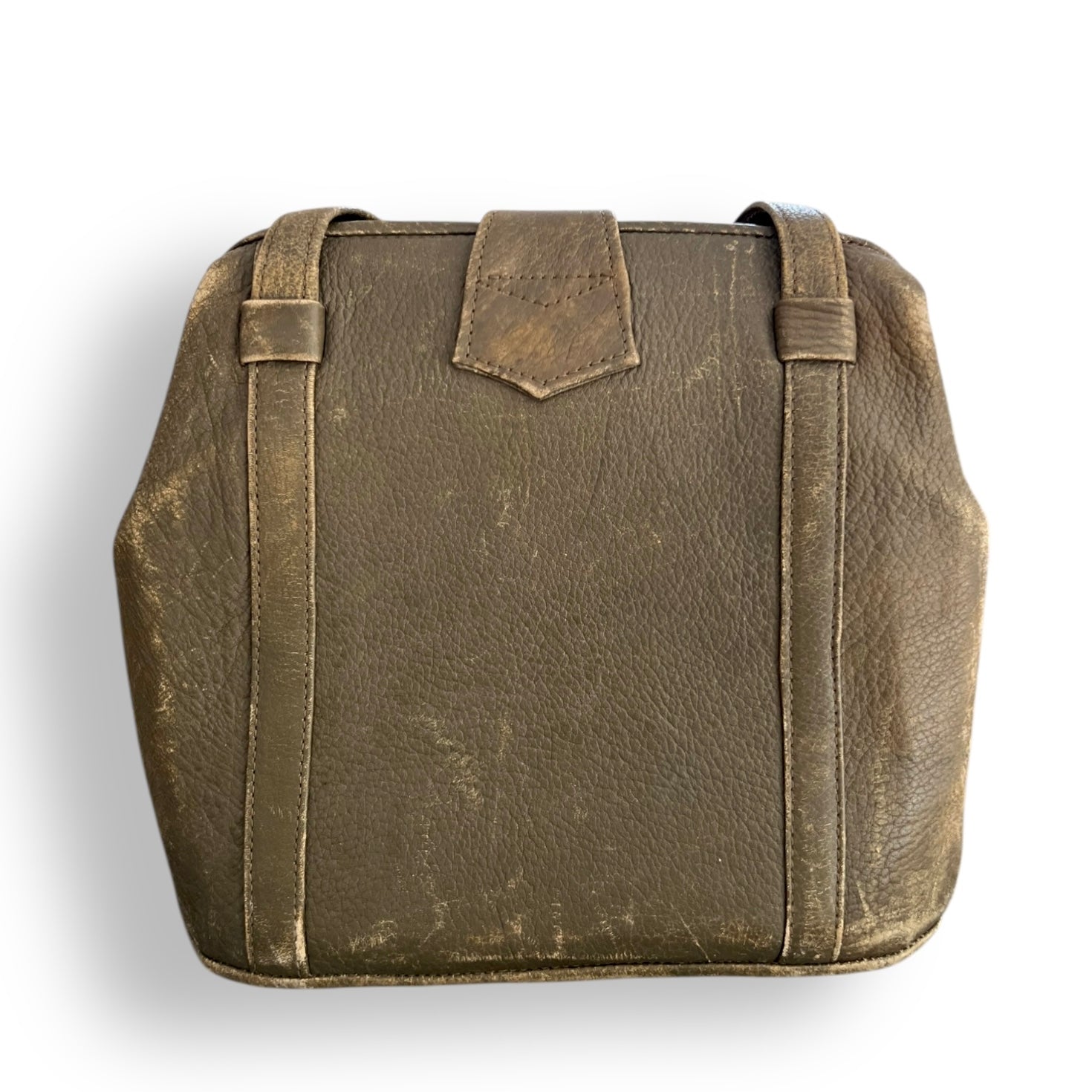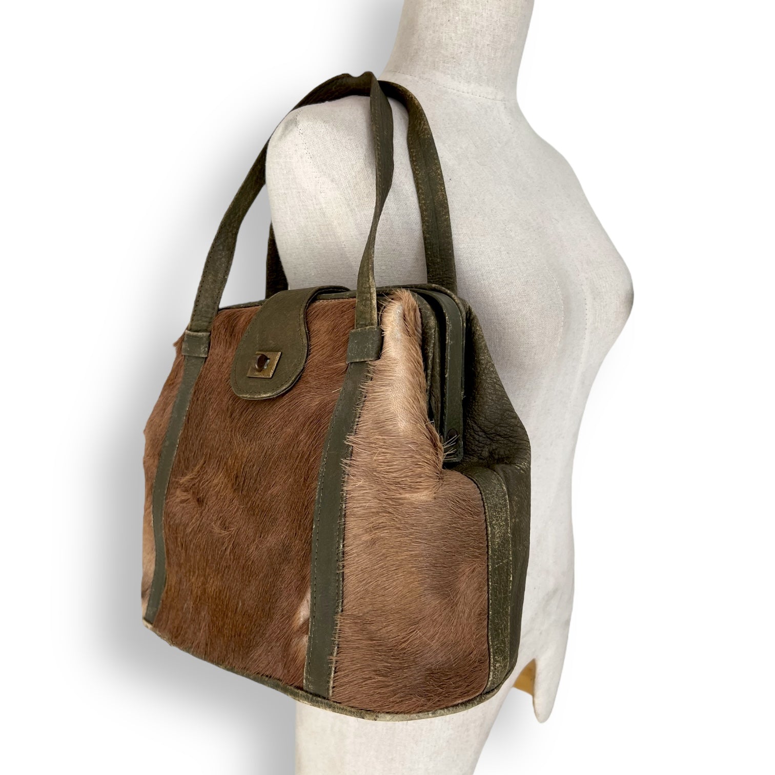 A very cool and army-esque vintage bag, featuring springbok fur with khaki green leather